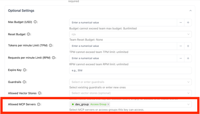 - The key will have access to all MCP servers in those groups